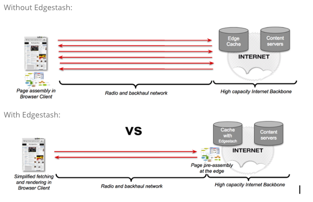 When a web browser requests a specific web page, the request requires several round trips and eats bandwidth before it completely retrieves all the necessary material to build the page (e.g. templating, JavaScript libraries, JSON data and so on). This slows things down, but Varnish Software has developed Edgestash, a Mustache-based templating language that moves assembly logic from the client side to the edge. This allows for page fetching and assembling at the edge of your architecture, reducing round trips and bandwidth, leading to a faster experience overall. Also with device detection in the caching layer, device-specific/appropriate content will be folded into the mix: the right content fit for the right device delivered faster. Of course, you can use this technique alongside device detection to build different experiences on the fly, according to the device.