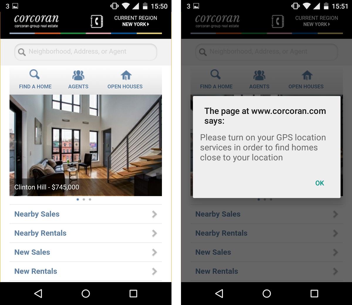 Corcoran, a New York real estate firm, utilizes location features to provide potential home-buyers and renters with a handy list of amenities near the searched property.