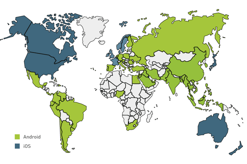 2015 was a bit worse for Android than for iOS in the markets we analyzed. Android lost some web traffic share in many large markets, such as USA and Germany.