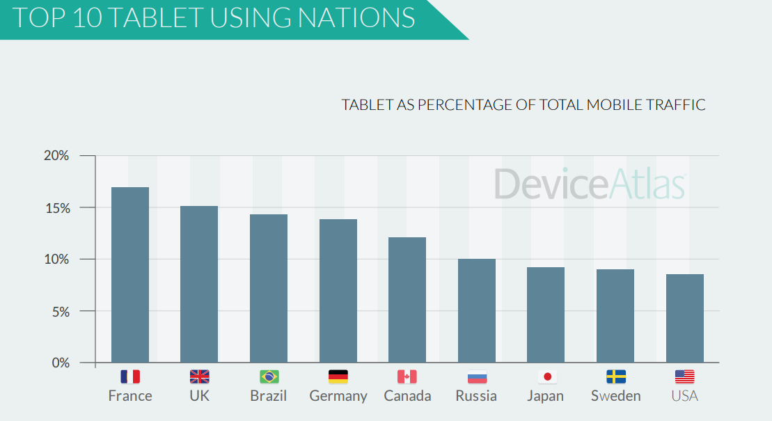 Above, we can see which countries have the highest Tablet usage (as a % of overall mobile traffic). What the underlying data shows, however, is a strong year for Android-powered tablet devices across all countries, with major gains into Apple’s suite of devices throughout the year.