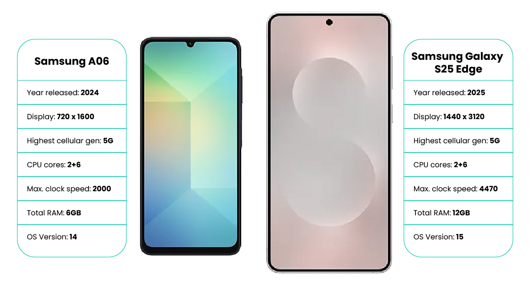 How old are the devices visiting your website/app? Year of release is a strong indicator of device capabilities and particular specifications, yet it’s rarely mentioned. Newer manufactured mobile phones (excluding budget models) tend to have more RAM, faster processors, higher cellular generation, and better screen resolution. All of these factors can impact how eCommerce webpages are shown to visitors.