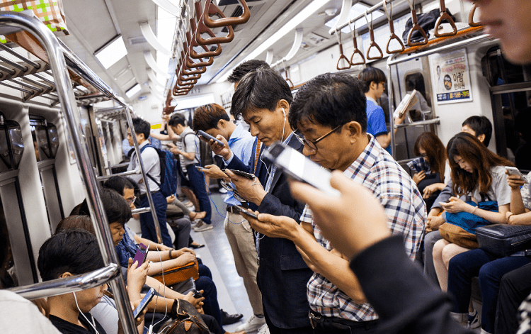 Smartphone penetration in South Korea is a whopping 95%, according to recent figures, with the remaining 5% use a mobile phone which doesn't offer internet access.