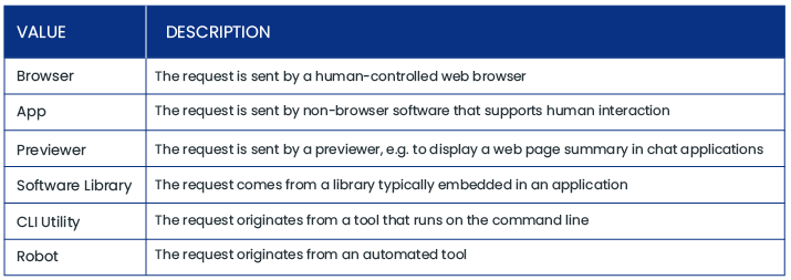 One of the triggers for this new property was the previewer source; link previewers cannot easily be identified as either human or non-human, so it makes sense to classify them separately to enable DeviceAtlas customers to serve an appropriate summary of the page. Software library is a broad category, which may sub-divide over time. For example, a user-agent string may simply say “LAVF 1.0” which offers little insight to the device, but a good deal about the activity in progress (in this case, audio or video consumption; this aspect is covered by the 'Contextual Usage' property).