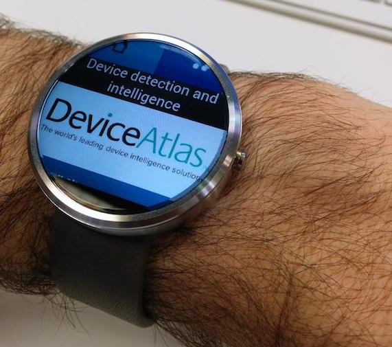 Google Glass comes equipped with a web browser controlled with voice and head movements. Glass is usually detected as a mobile device, hence m-dot websites are being displayed by its browser. Users can also access websites on their Android Wear-based watches. Below you can see how DeviceAtlas’ website looks like on a Moto 360.